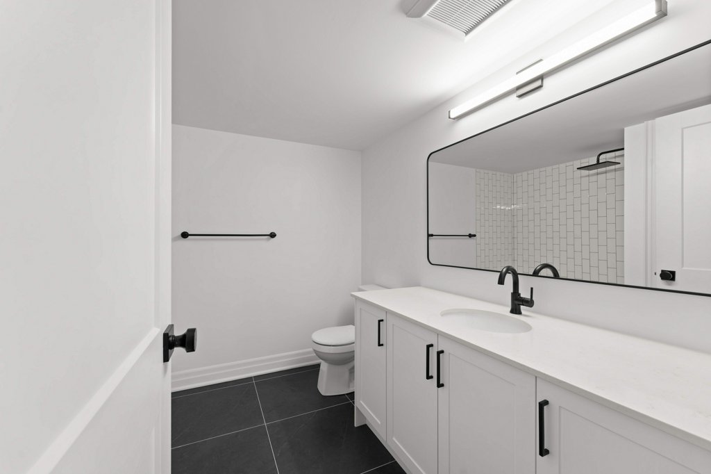 - Rough-in for shower/bath, single sink vanity and toilet in basement.
