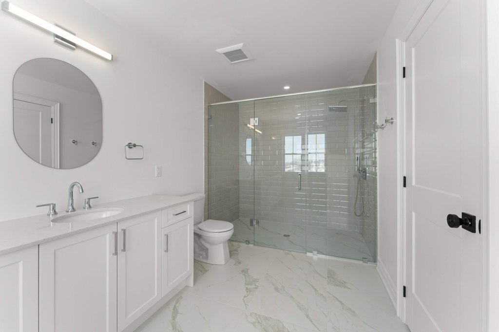 - Designer vanities with quartz countertops, undermount sink and designer hardware.