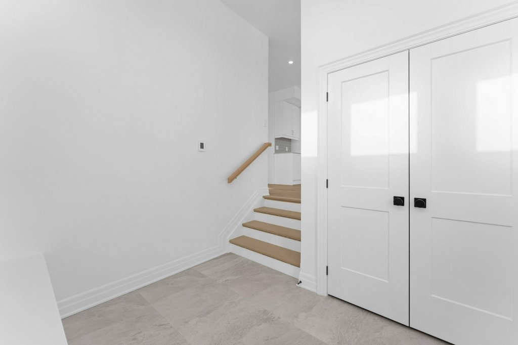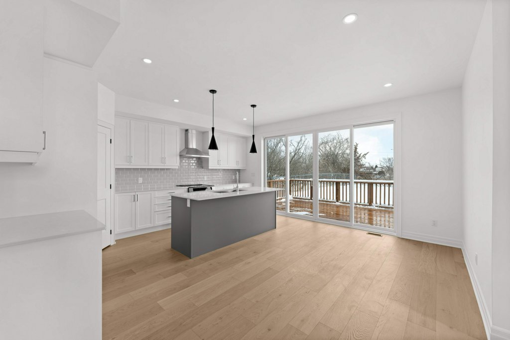- Choice of designer kitchen cupboards with quartz countertops, soft close hardware, and designer pulls.